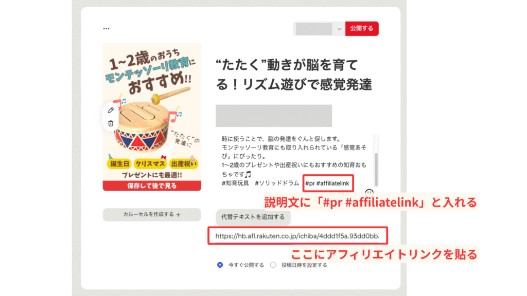 💡アフィリエイトリンクを貼る際は、説明文に「#pr #affiliatelink」に必ず入れましょう!