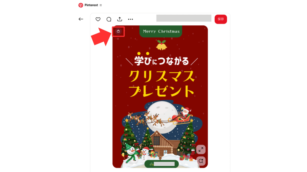 商品追加したいピンを表示させます。画像の左上にある「カバンマーク(タグアイコン)」をクリックしてください。
